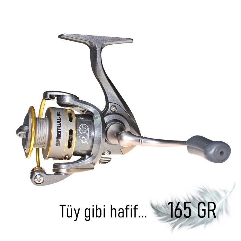Spiritual DX1000, LRF balıkçılığı tutkunları için hassasiyet, hafiflik ve dayanıklılık sunar. 165 gr ağırlığı, uzun süreli avlarda yorgunluğu azaltırken, 5.2:1 devir oranı ve 6+1 rulman sistemi sayesinde misina sarımı hızlı ve pürüzsüzdür. Misina kapasitesi (6lb-180mt, 8lb-135mt, 12lb-95mt), LRF balıkçılığında kullanılan hafif misinalarla uyumludur.